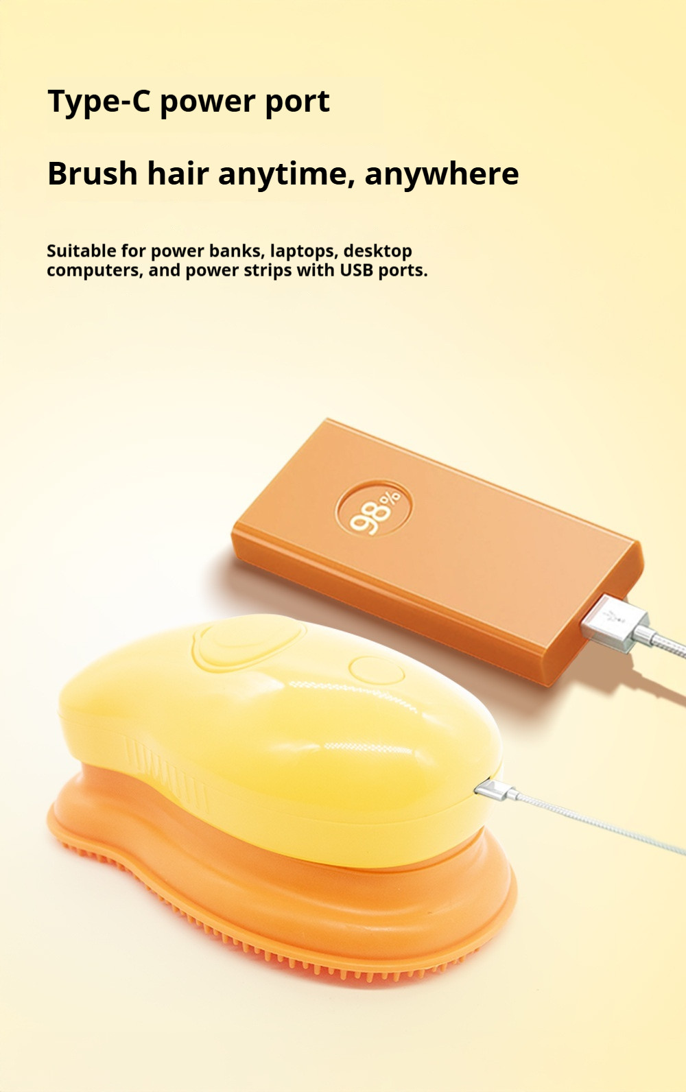 - منفذ الطاقة من النوع C، تمشيط الشعر في أي وقت وفي أي مكان - مزودة بمنفذ شحن مريح من النوع C، توفر هذه الفرشاة حرية لاسلكية وإمكانية إعادة الشحن السريع، مما يجعل العناية بالشعر أمرًا سهلاً في المنزل أو أثناء التنقل.