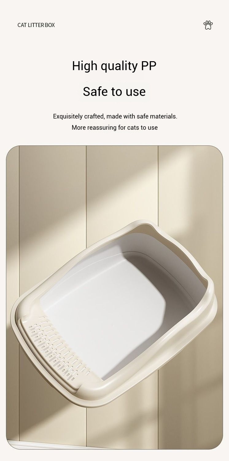 Crafted for durability and peace of mind, this litter box is made from high-quality PP material. It is exquisitely crafted and made with safe materials, guaranteeing a long-lasting and non-toxic space for your feline friend.