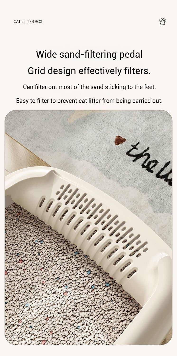 Tired of battling stubborn odors and messy litter tracking? Our solution features a unique circulation system that circulates air to prevent stuffiness and odor, ensuring a fresher environment. The wide sand-filtering pedal is a game-changer, effectively filtering out most of the sand sticking to your cat’s feet as they exit. This means less mess on your floors and less cleaning for you.