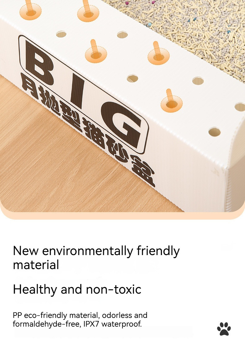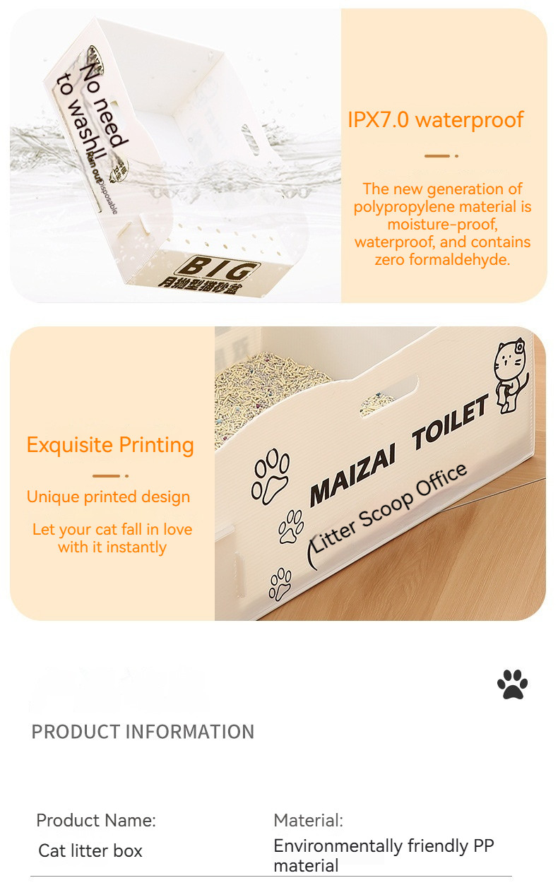 Crafted from the new generation of polypropylene material, this litter box boasts an impressive IPX7.0 waterproof rating. This advanced material is completely moisture-proof, waterproof, and contains zero formaldehyde, ensuring a safe and odor-resistant environment for your feline friend. The exquisite printing features a unique and charming design that will make this box a stylish addition to any space.