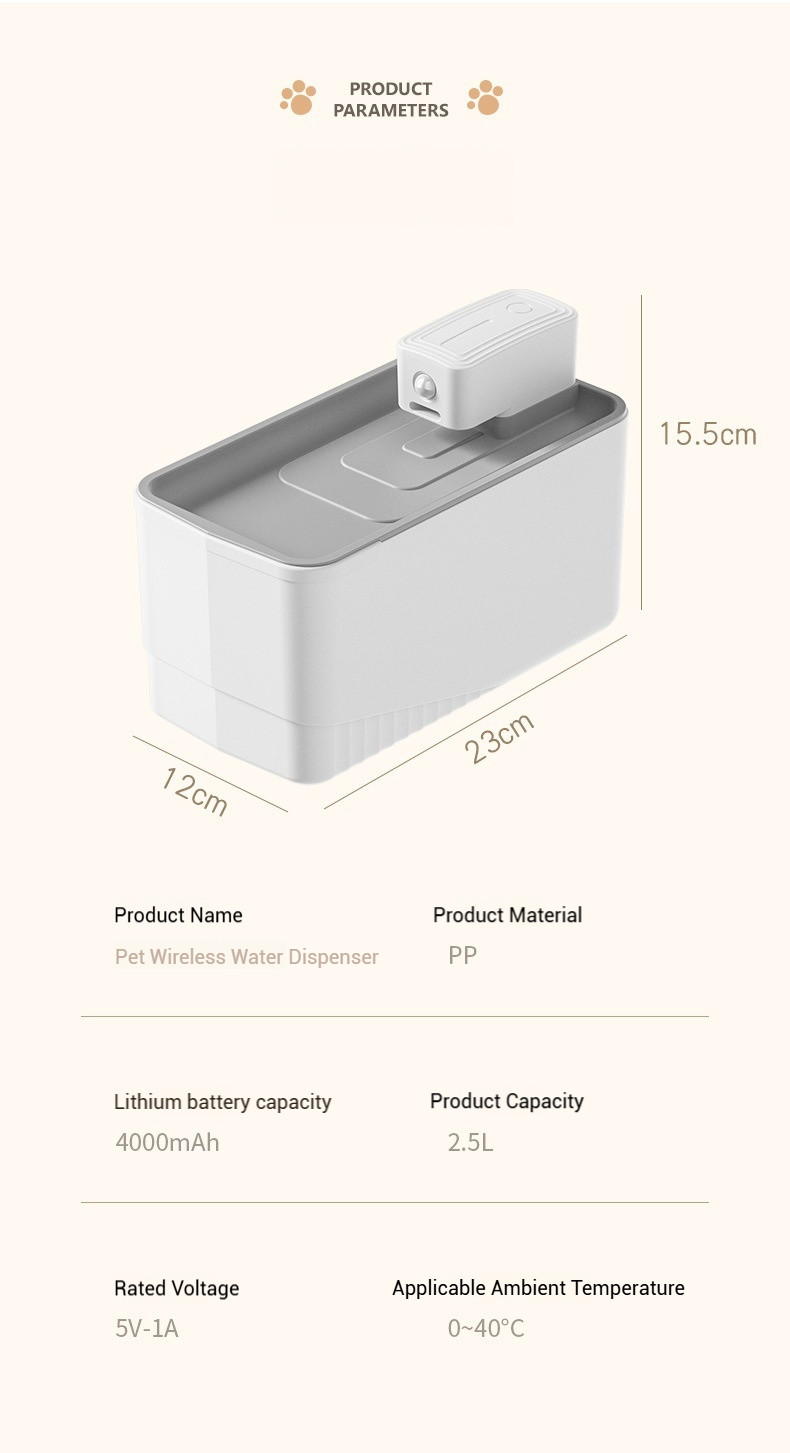 - Extended Hydration for Pet Parents: With a generous 2.5L water capacity, this dispenser meets the drinking needs of an adult cat for about 5 to 7 days. This allows owners to travel or have busy schedules with true peace of mind.
