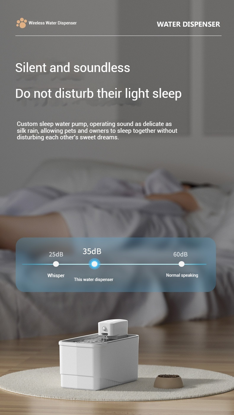 - Whisper-Quiet Operation for Uninterrupted Rest: Equipped with a custom sleep water pump, the fountain operates with a sound as delicate as silk rain. Its near-silent performance ensures it allows pets and owners to sleep together without disturbing each other’s sweet dreams.