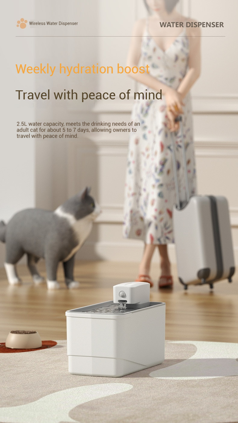 Ensure your beloved cat has access to fresh, flowing water even when you’re away with the Automatic Pet Water Dispenser Wireless Cat Water Fountain.