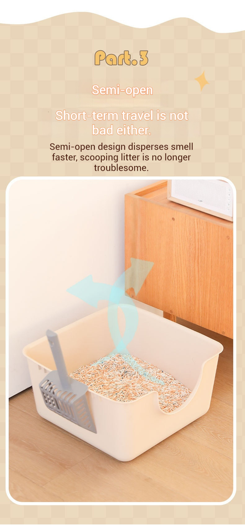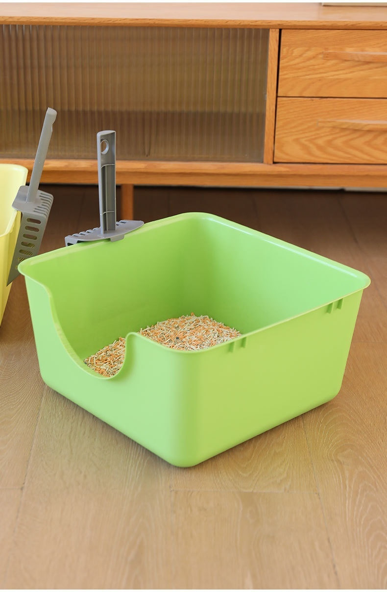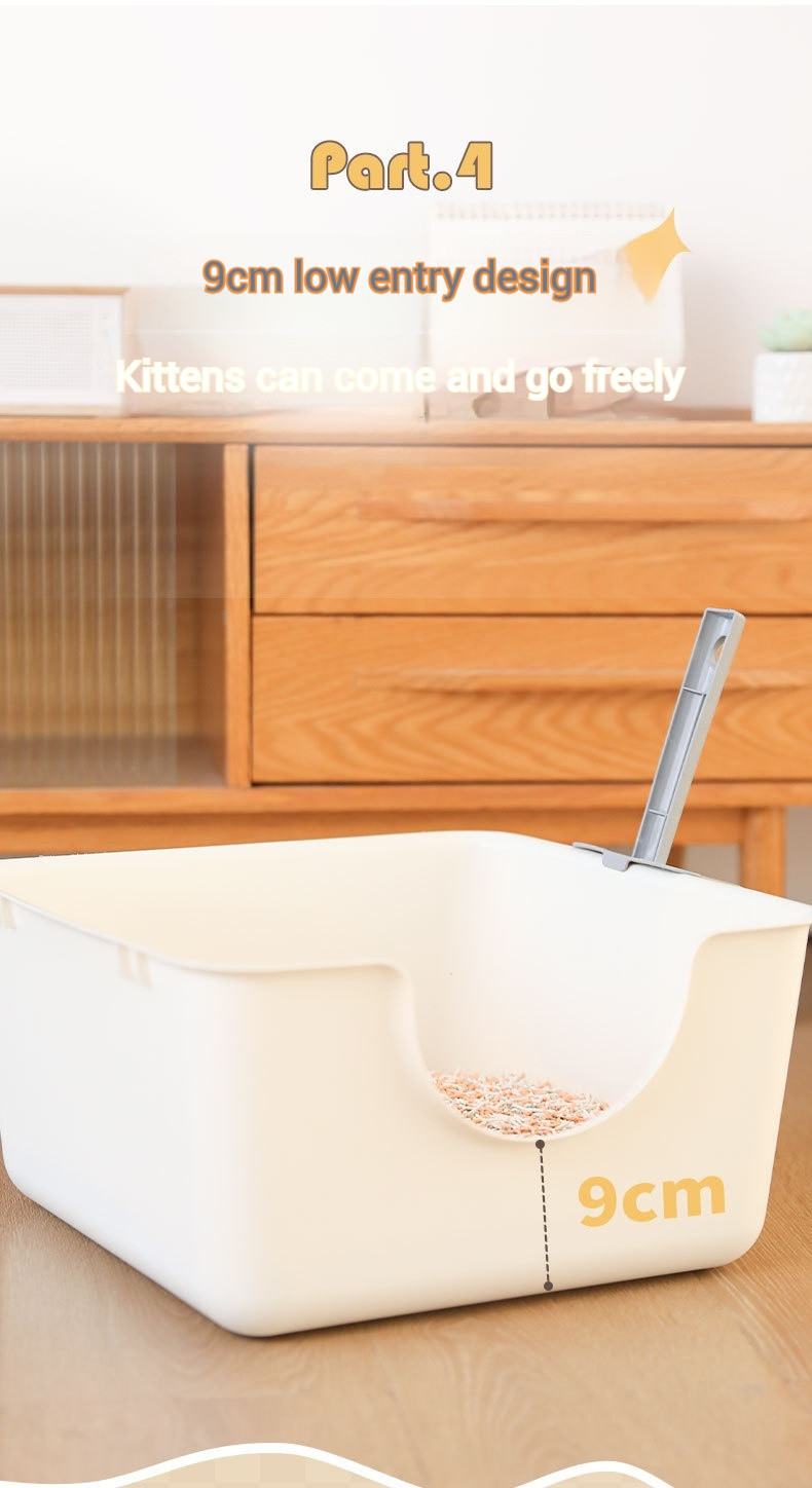 Tired of messy, smelly, and inconvenient litter boxes? Transform your cat’s bathroom experience and simplify your cleaning routine with our Cat Litter Box with Scoop! This open pet litter tray is thoughtfully designed with both your feline’s comfort and your ease of use in mind.