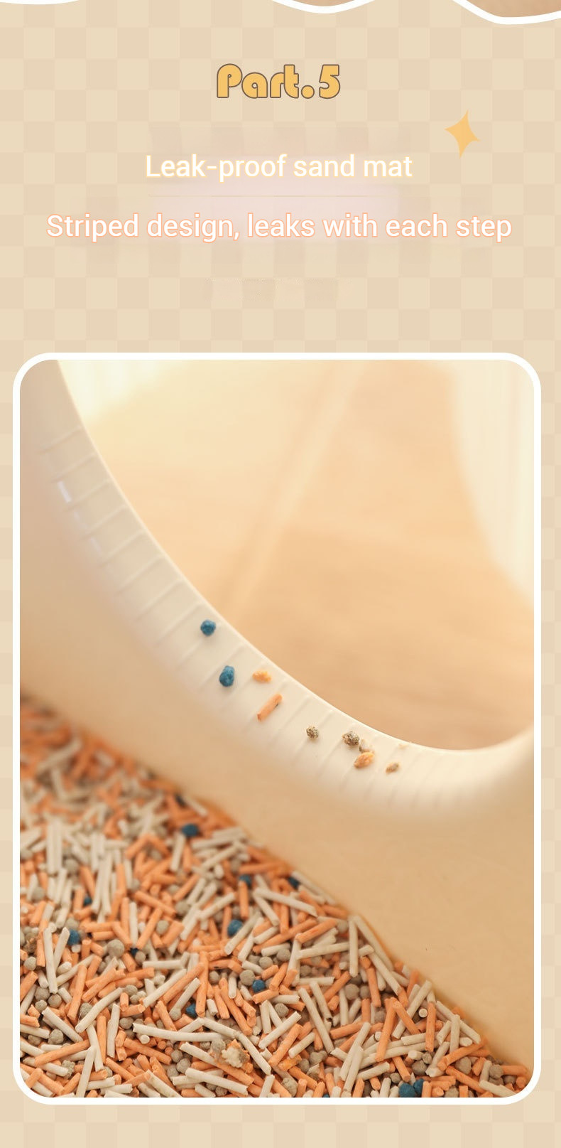 But the innovation doesn’t stop there. The interior features a practical striped design that leaks with each step, helping to clean your cat’s paws and minimize litter tracking throughout your home. The generous 9cm low-entry design ensures that kittens and senior cats can come and go freely without struggle, while the semi-open design helps to disperse smell faster, making the area more pleasant for everyone. Plus, the 18cm deep basin body is engineered to contain litter effectively, ensuring no sand splashing outside during even the most enthusiastic digging.